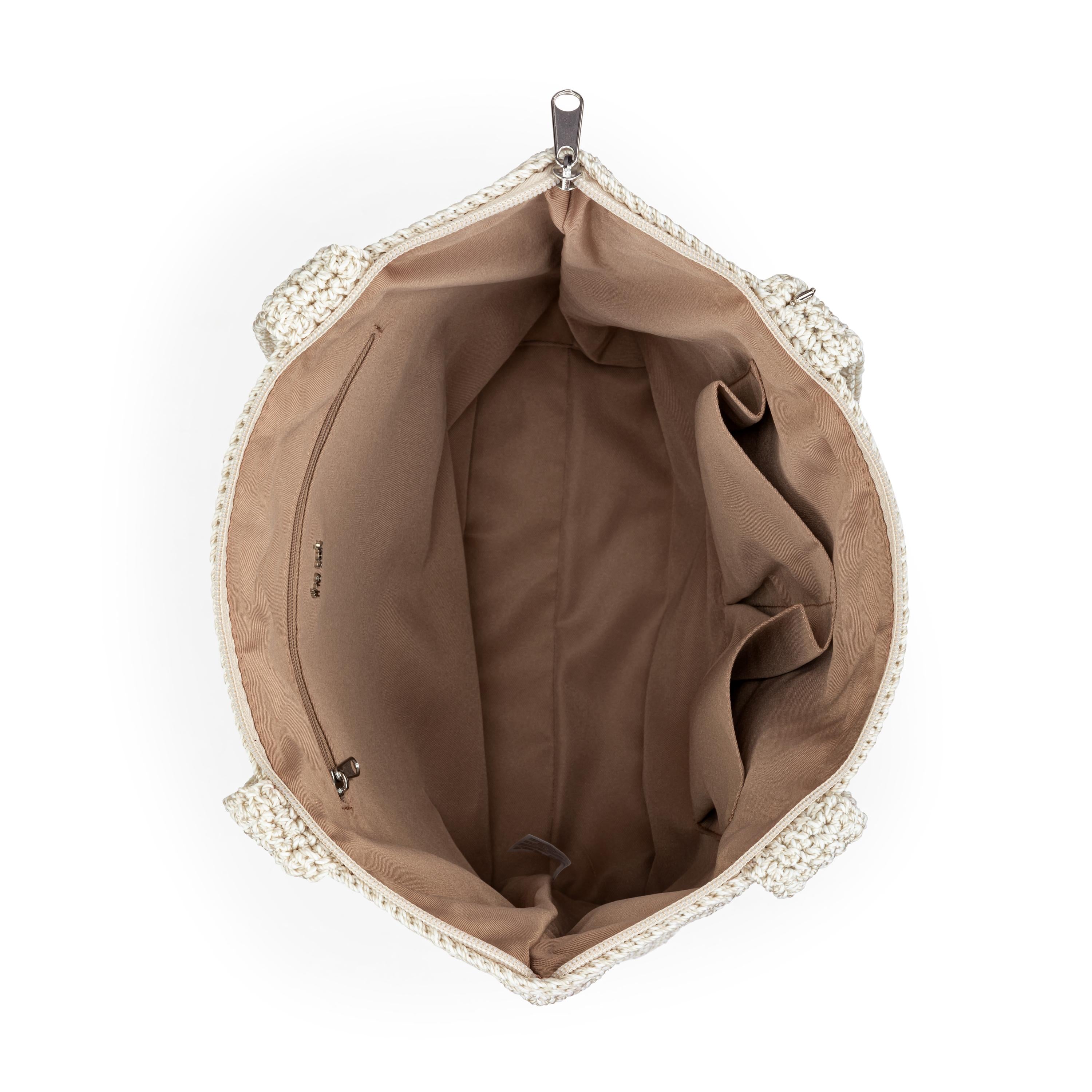 • Exterior: Hand-crochet, Recycled Polypropylene Yarn, 33% Repreve Recycled polyester + 67% Virgin Polypropylene; Soft And Durable With Subtle Sheen